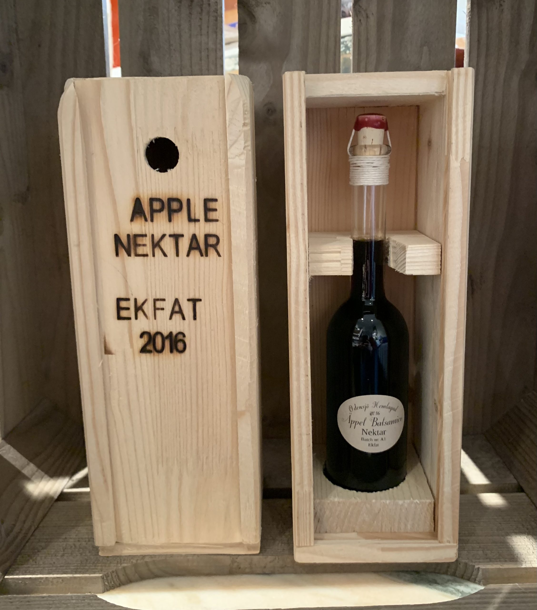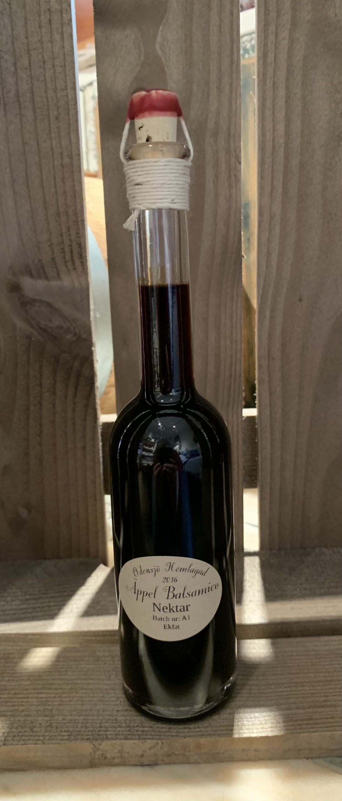 Detta är en äppelbalsamico som är lagrad och har legat på ekfat sedan 2016.